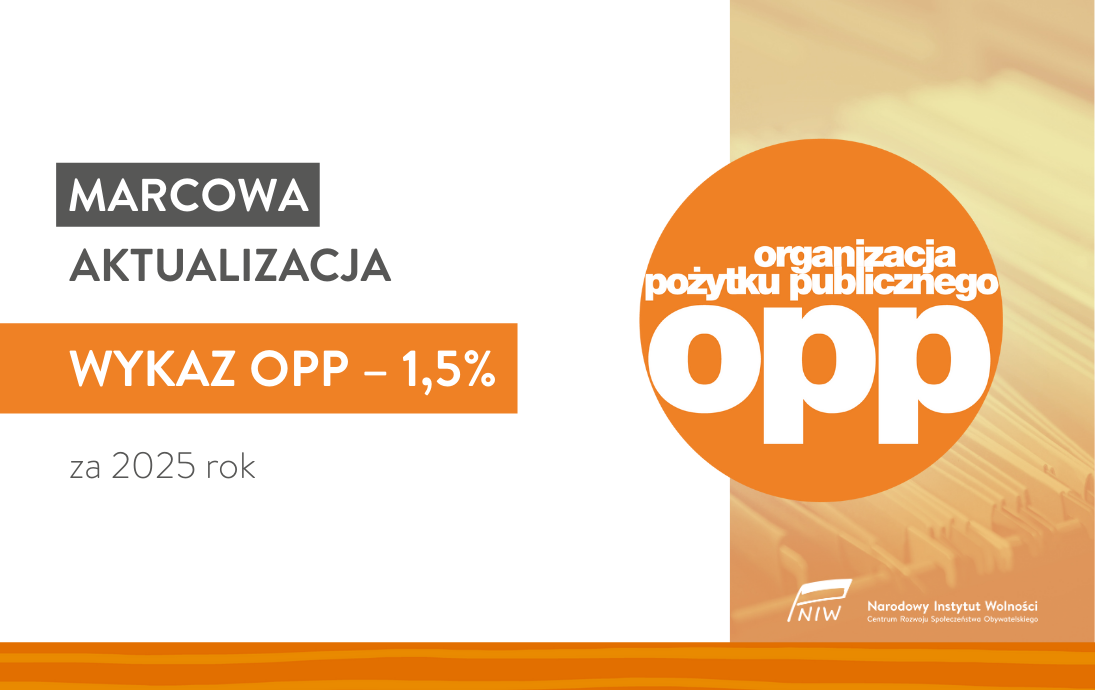 Dyrektor Narodowego Instytutu Wolności – Centrum Rozwoju Społeczeństwa Obywatelskiego (NIW-CRSO) na podstawie danych otrzymanych z Ministerstwa Sprawiedliwości zaktualizował 16 marca 2026 roku wykaz organizacji pożytku publicznego uprawnionych do otrzymania 1,5% podatku dochodowego od osób fizycznych za 2025 rok w 2026 roku.