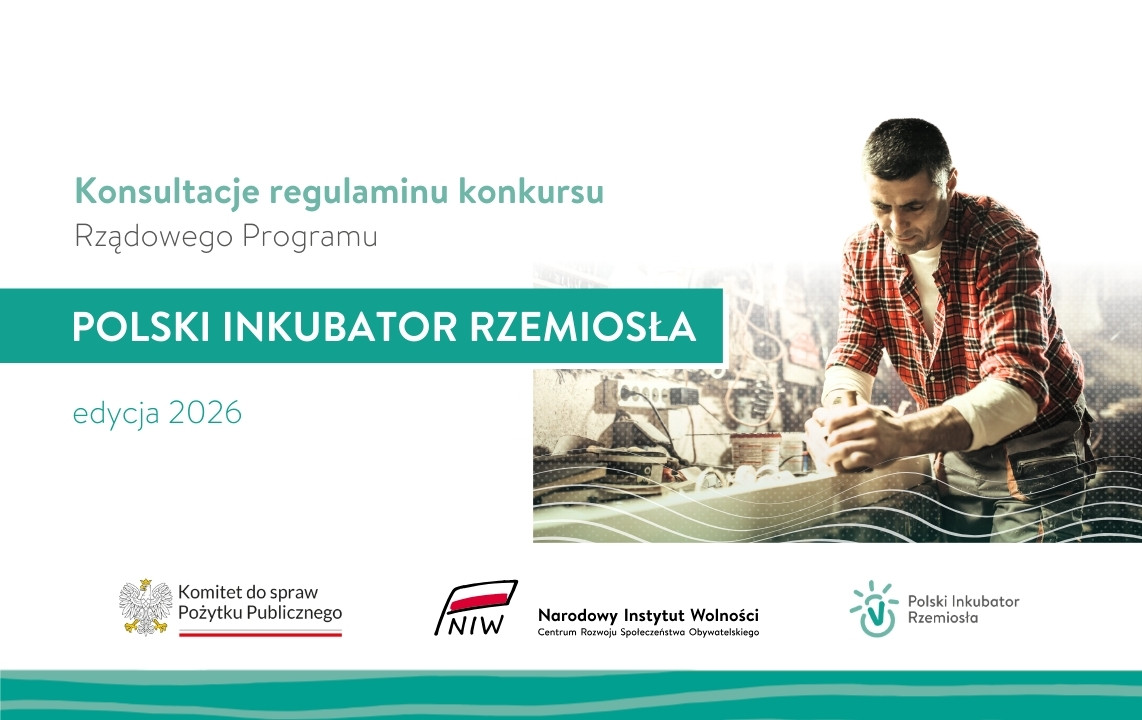Dyrektor Narodowego Instytutu Wolności – Centrum Rozwoju Społeczeństwa Obywatelskiego zachęca wszystkie zainteresowane osoby, organizacje i instytucje do wyrażenia opinii na temat projektu regulaminu konkursu w ramach Rządowego Programu Polski Inkubator Rzemiosła, edycja 2026.